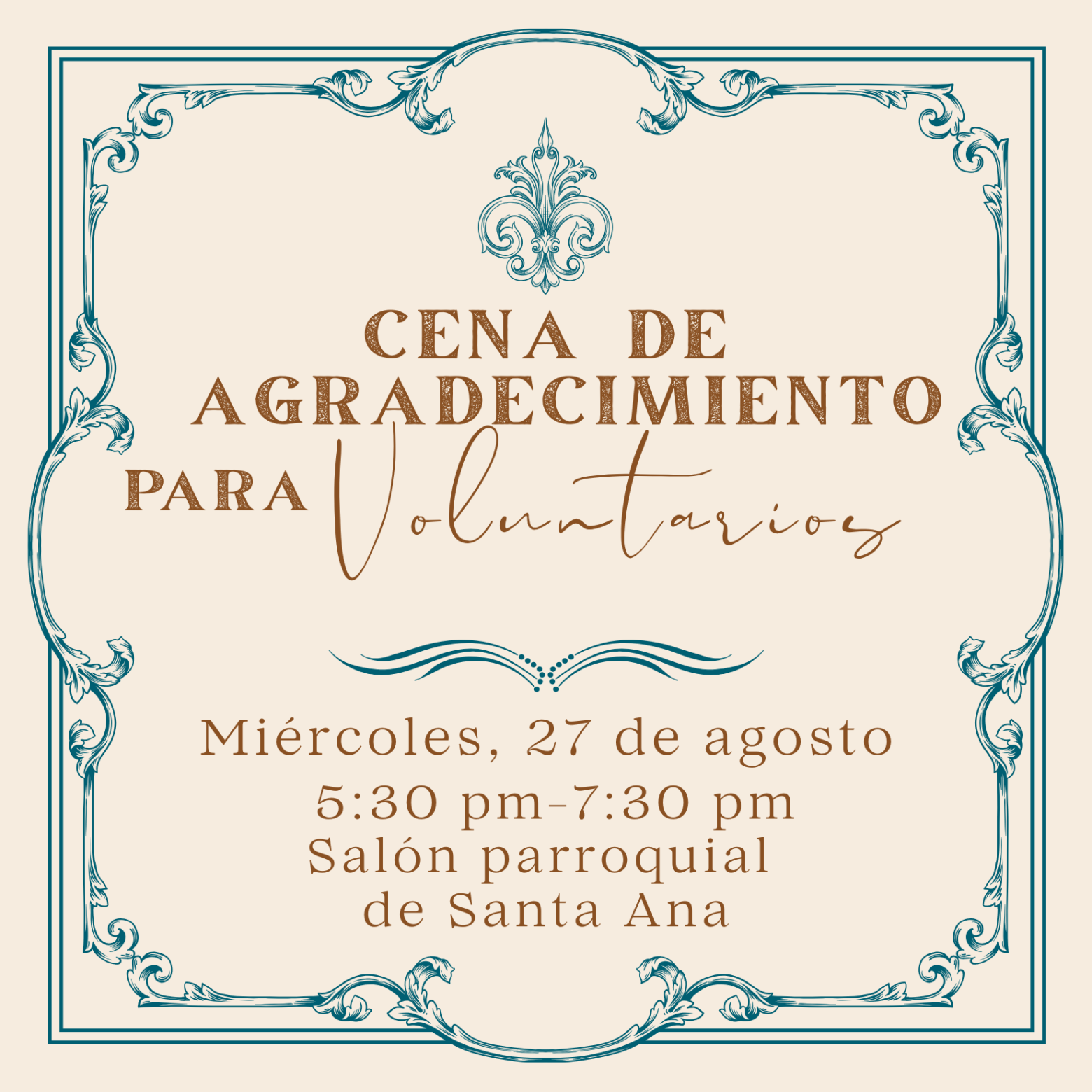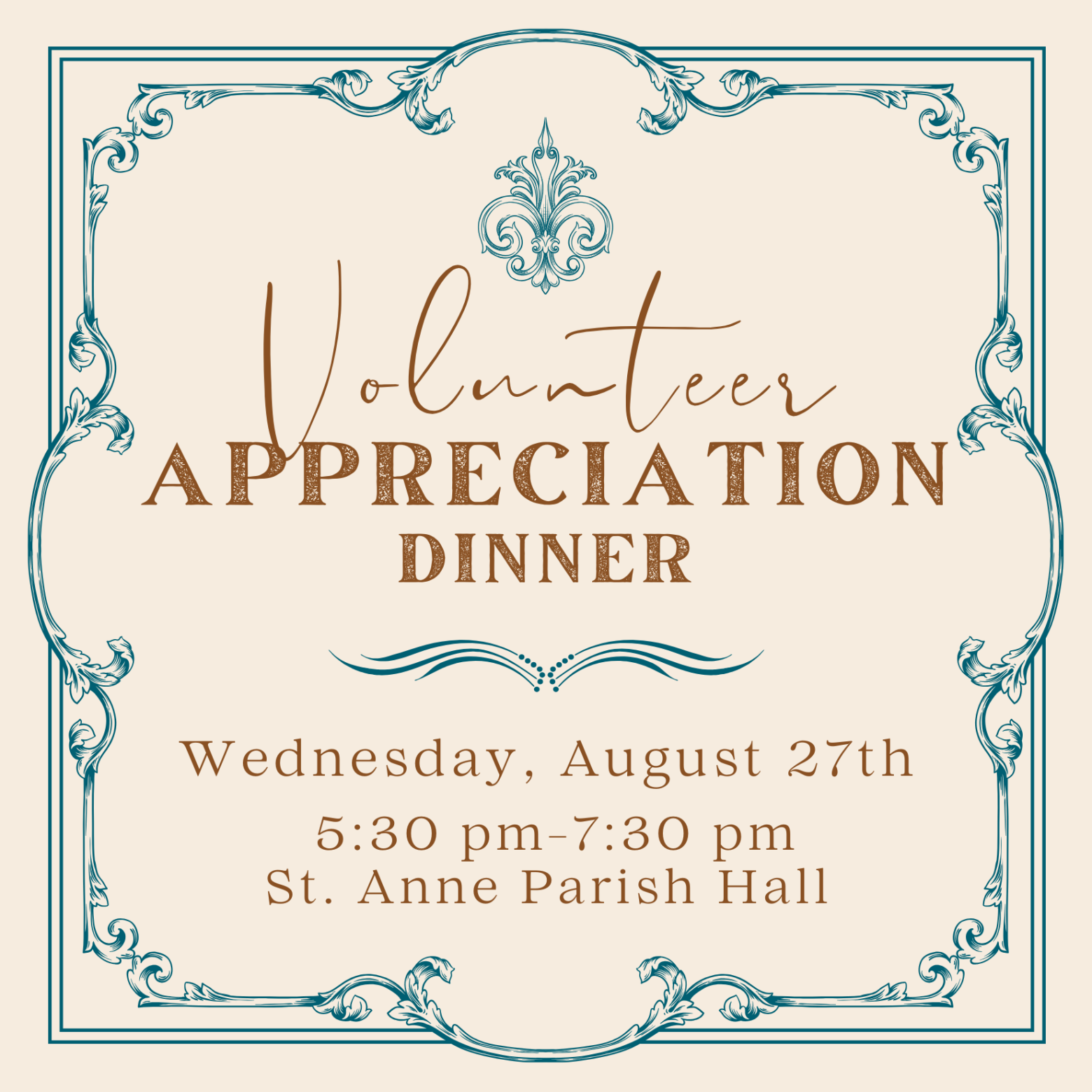 Volunteer Appreciation Dinner Wednesday, August 27th, 2025 at 5:30 PM